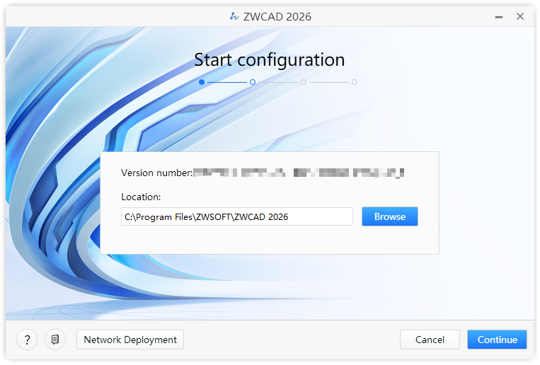 Zadejte umístění instalace pro ZWCAD. Použijte výchozí cestu nebo klikněte na Procházet (Browse) a vyberte jinou.