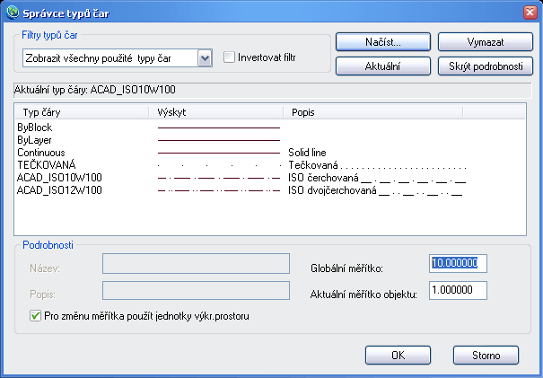 - Potvrďte výber tlačidlom OK, zmena mierky typu čiary sa