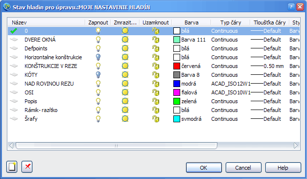 Nastavenie stavov vlastností hladín rozsiahlejších výkresov si môžeme uložiť