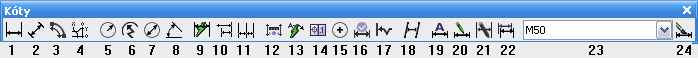 Pre časté používanie príkazov pre kótovanie je paleta nástrojov Kóty v