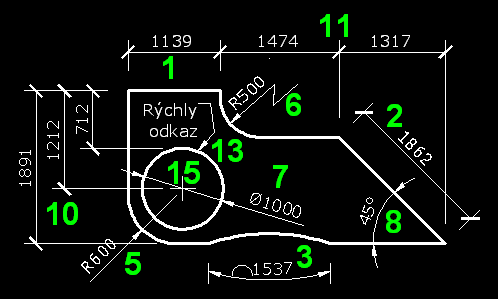pre kótovanie kružnice, uhla, zaoblení a oblúka. Na kótovanie