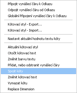 Aktualizácia kót - pre aplikovanie aktuálneho štýlu pre vybrané kóty.