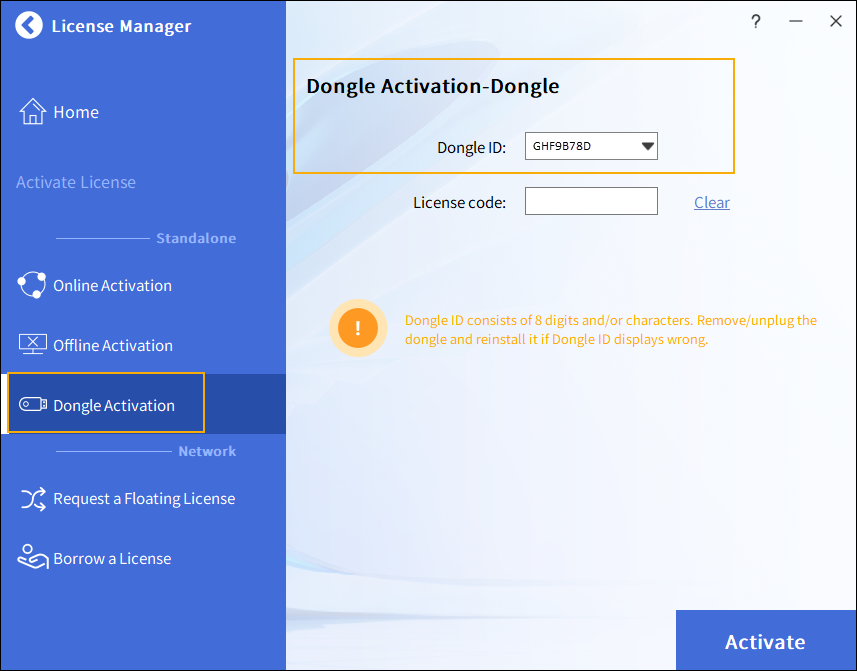 Klikněte na Aktivovat licenci, čímž vstoupíte na stránku Aktivovat licenci ZWCAD.