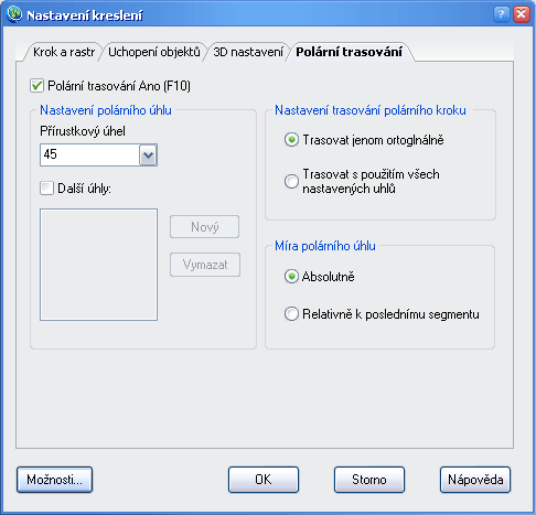 Polárne trasovanie obmedzí pohyb kurzora po určených uhloch podľa zadaných prírastkov pozdĺž