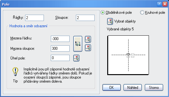 Pole  Na viacnásobné kopírovanie objektov v pravidelných rozstúpeniach používame