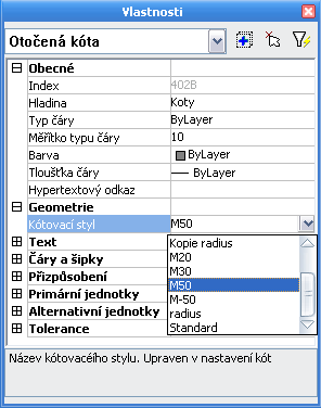 Každý objekt výkresu má definované určité vlastnosti. Základné