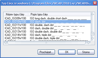 - Vybrané typy čiar sa zobrazia a načítajú do výkresu na použitie.