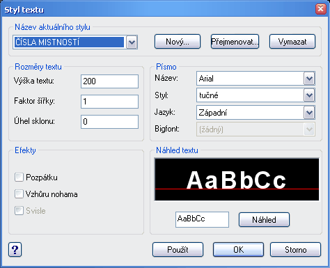 Pomocou štýlu textu definujeme vzhľad textu. O aktuálnom štýle textu pri kreslení nás informuje paleta nástrojov Styly /Menu - Zobrazit - Paleta nástroju...- Styly/ obr. 5-2.